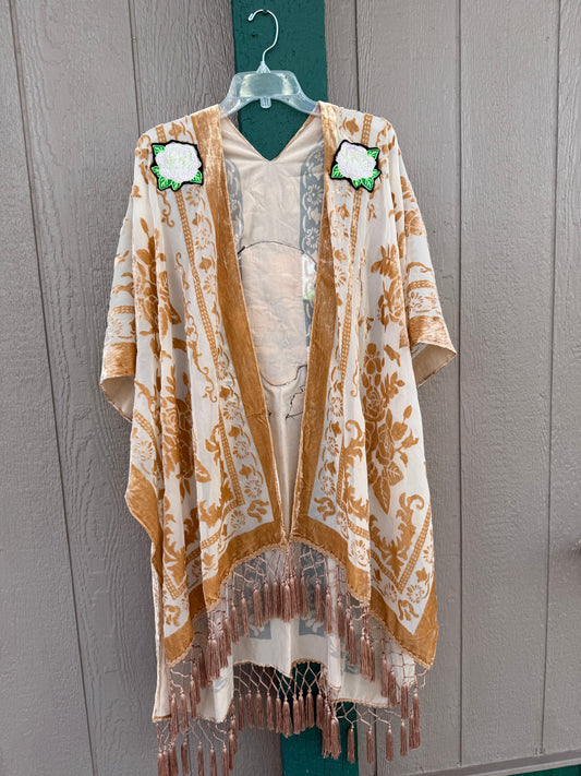 Burnout Velvet Rose and Bolts Fringe Kimono